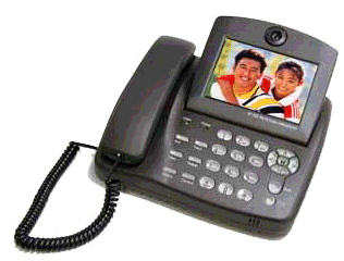 アカデミー・ジャパンよりカラーテレビ電話VP504が発売されている。一般の電話回線を利用して動画と音声を同時に通信するため,通信料金は一般の通話料金と同じである。通信の形式は,ITU-T H.324規格に準拠しており,この規格と互換性のある世界中のテレビ電話やパソコンなどの端末と通信することができる。映像と音声の外部接続端子を備えつけているため,本体内蔵のカメラとディスプレイを使用する他に,外部の大型テレビやビデオカメラに接続したり,あるいは双方の会話をビデオテープに録画することも可能である。「画像スピード」を7段階で調節できるようになっており(より細かい中間的なスピードも設定可能),画像のスピードと鮮明度(解像度)とが反比例するような形で調節できる。