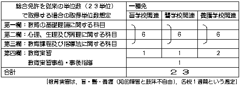 現在,盲・聾・養護学校の各免許は以下のように取得単位によって規定されている。